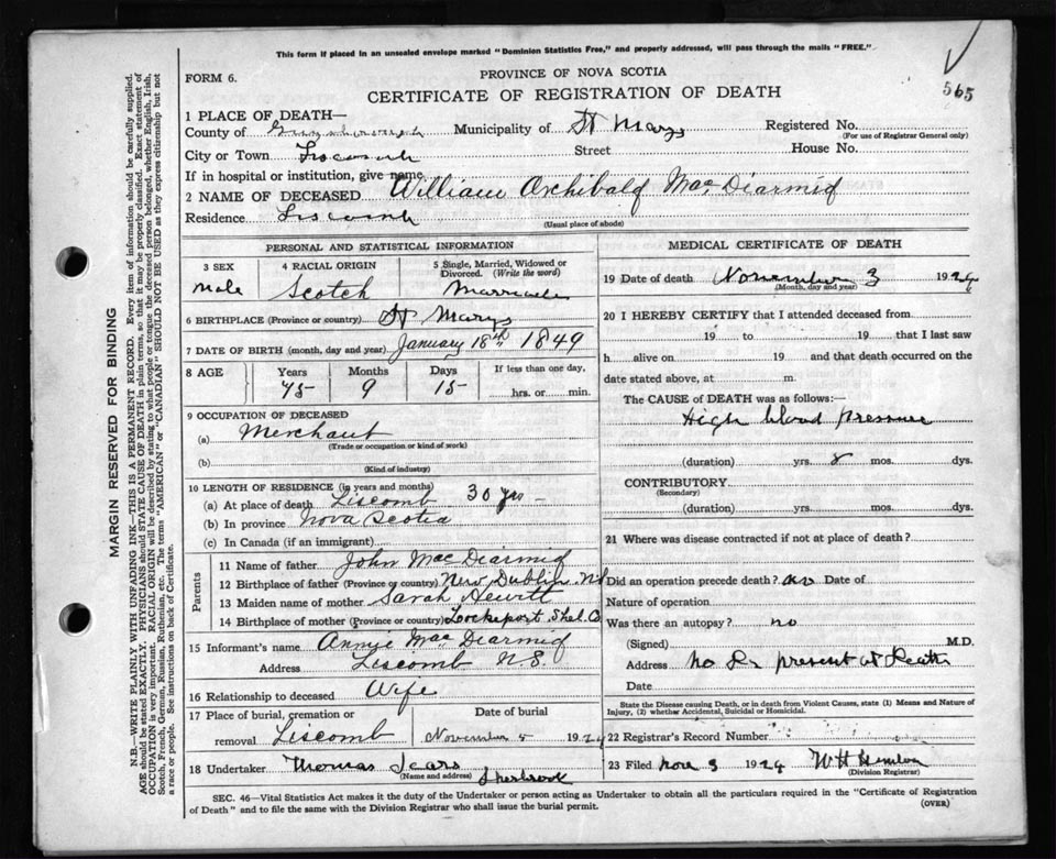 Nova Scotia Archives — https://archives.novascotia.ca/vital-statistics/death/?ID=172206