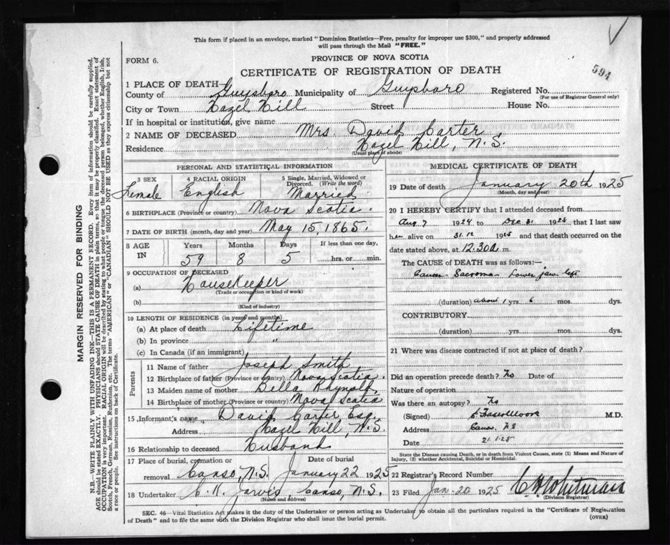 Death Registration: Year: 1925 file: 69 number: 594