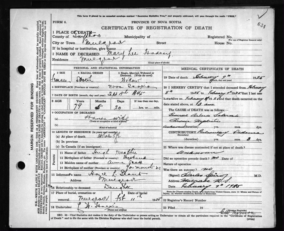 Nova Scotia Archives — https://archives.novascotia.ca/vital-statistics/death/?ID=172276