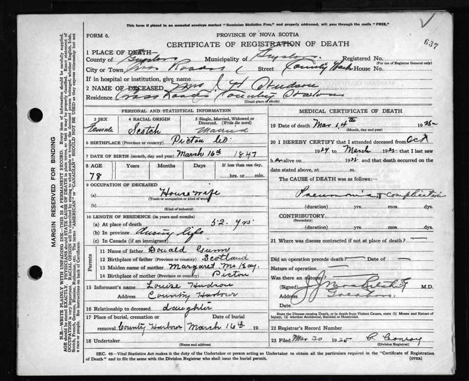 Nova Scotia Archives — https://archives.novascotia.ca/vital-statistics/death/?ID=172279