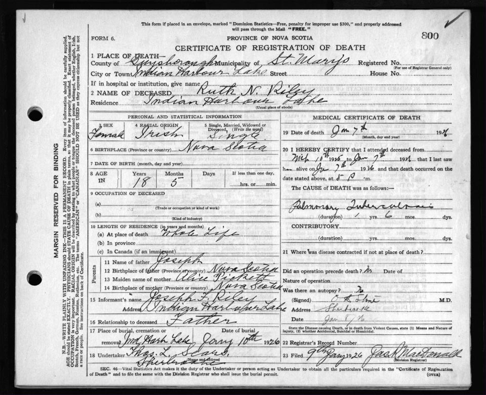 Death Registration: Year: 1926 file: 69 number: 800