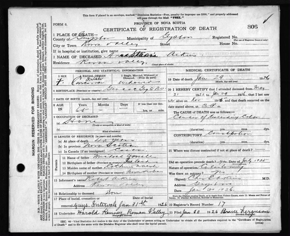 Nova Scotia Archives — https://archives.novascotia.ca/vital-statistics/death/?ID=172448