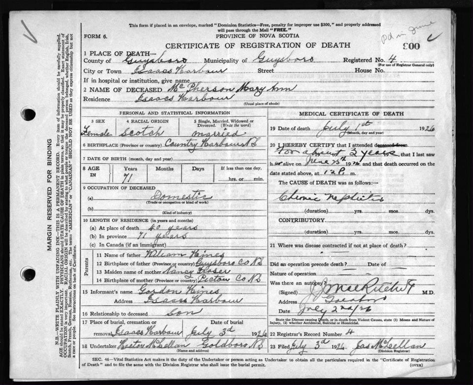Nova Scotia Archives — https://archives.novascotia.ca/vital-statistics/death/?ID=172542