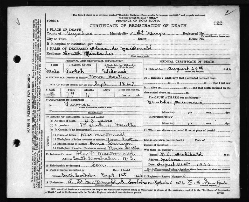 Nova Scotia Archives — https://archives.novascotia.ca/vital-statistics/death/?ID=172564
