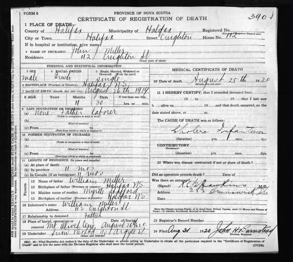 Death Registration: Year: 1920 file: 71 number: 390