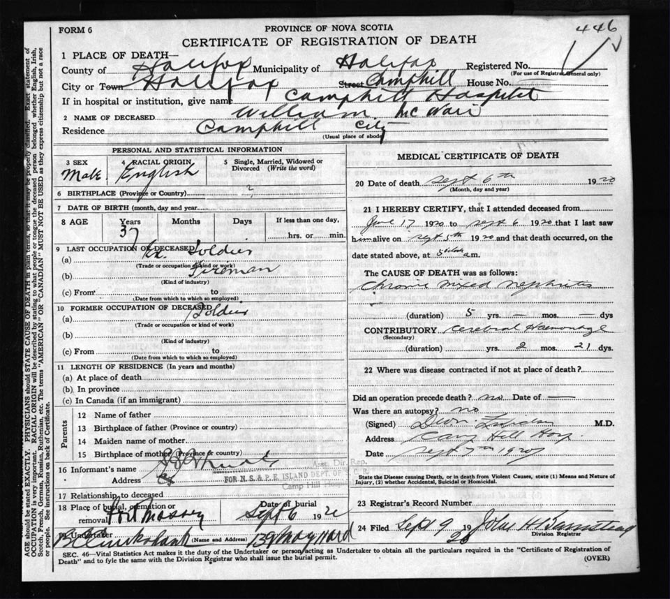 Death Registration: Year: 1920 file: 71 number: 446