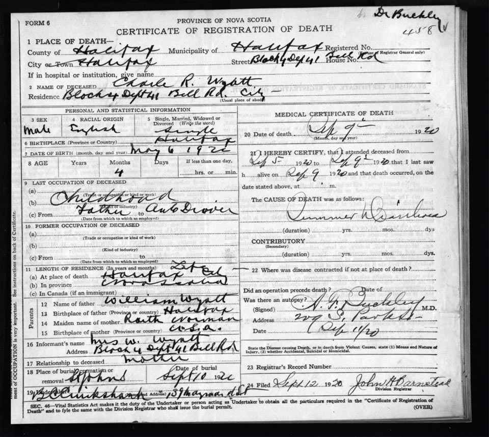 Death Registration: Year: 1920 file: 71 number: 458