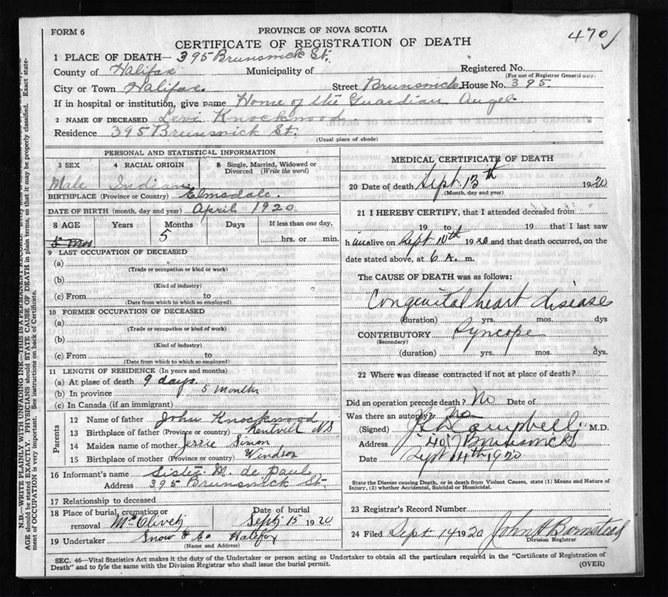 Death Registration: Year: 1920 file: 71 number: 470