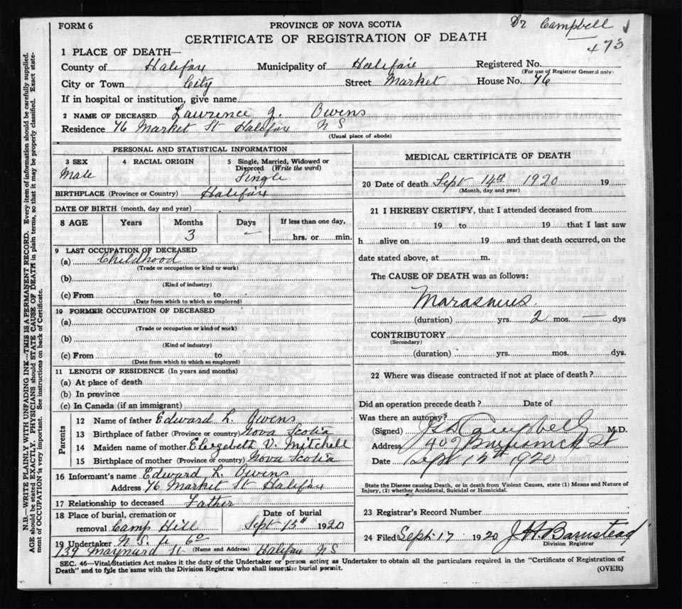 Death Registration: Year: 1920 file: 71 number: 473