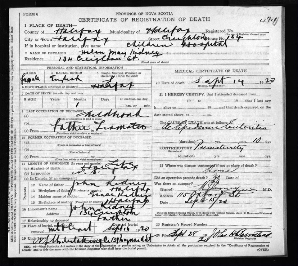 Death Registration: Year: 1920 file: 71 number: 474