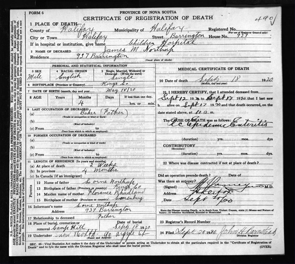 Death Registration: Year: 1920 file: 71 number: 490