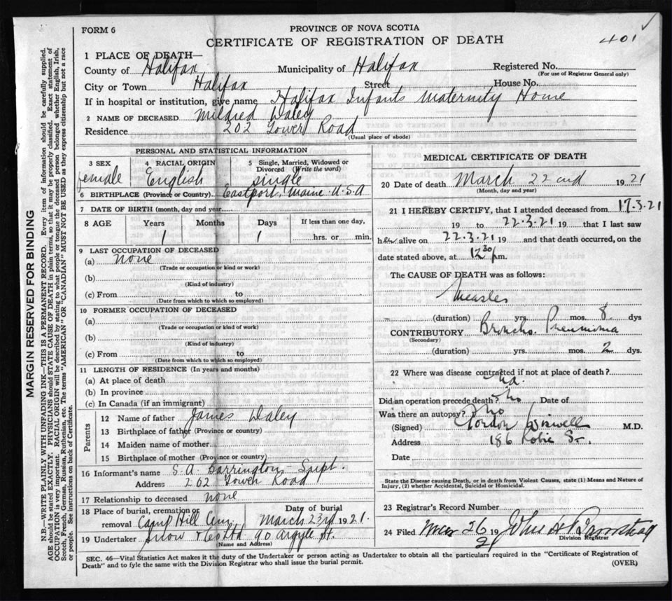 Death Registration: Year: 1921 file: 72 number: 401