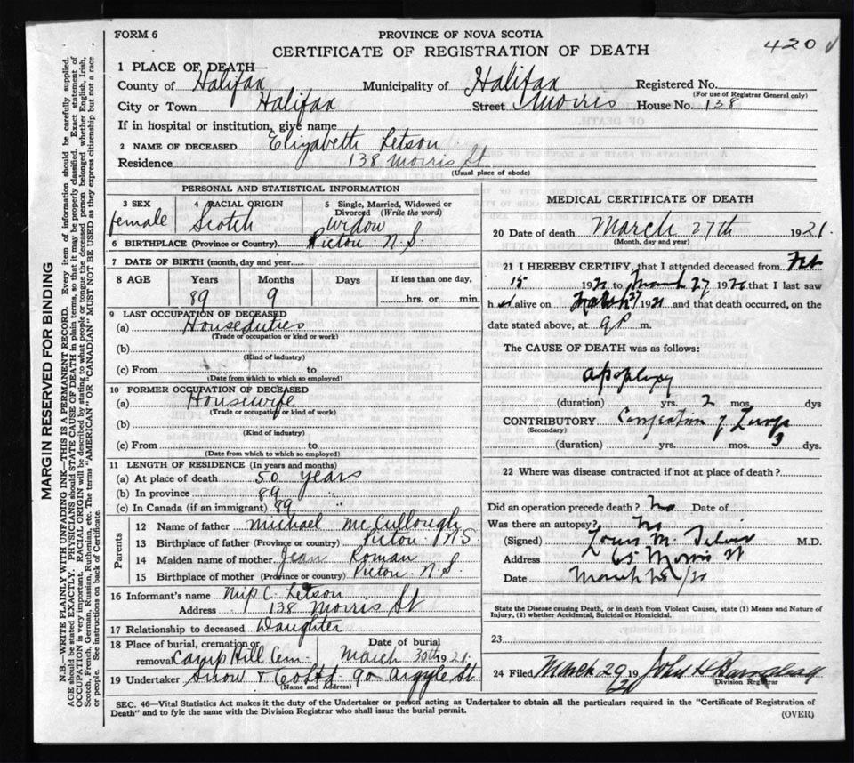 Nova Scotia Archives — https://archives.novascotia.ca/vital-statistics/death/?ID=174312