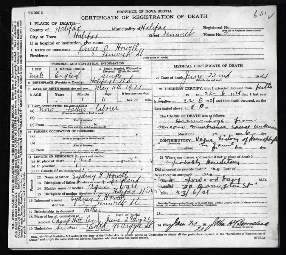 Death Registration: Year: 1921 file: 72 number: 631