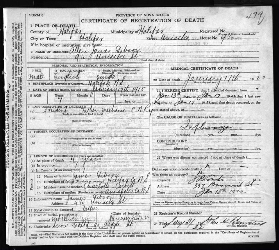 Death Registration: Year: 1922 file: 73 number: 479