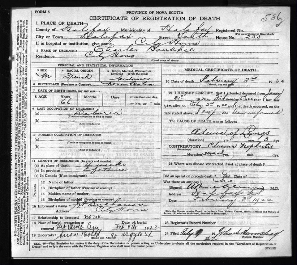 Death Registration: Year: 1922 file: 73 number: 536