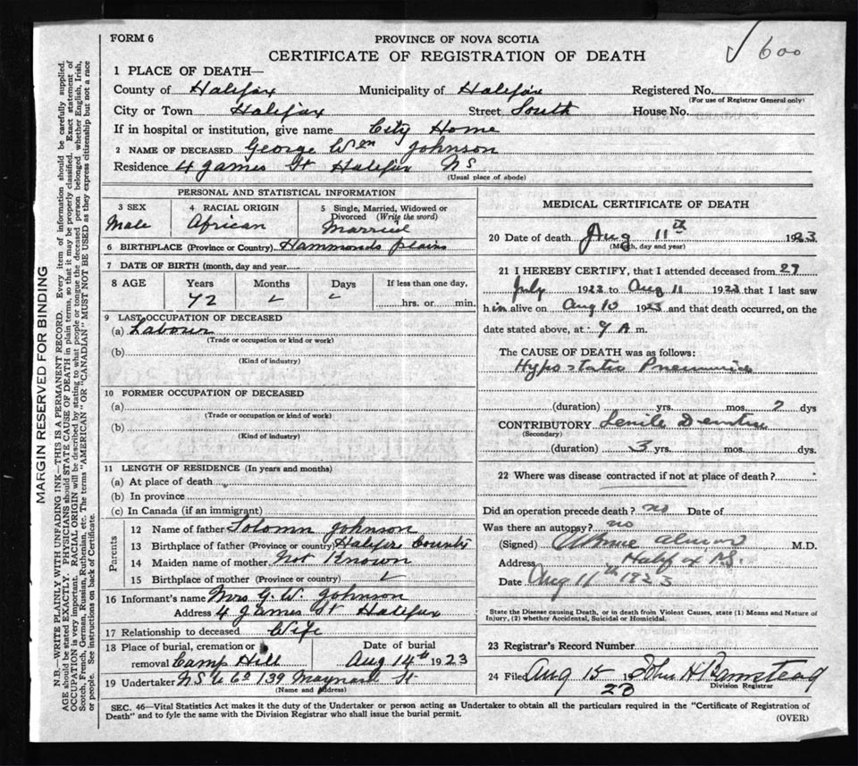 Death Registration: Year: 1923 file: 75 number: 600