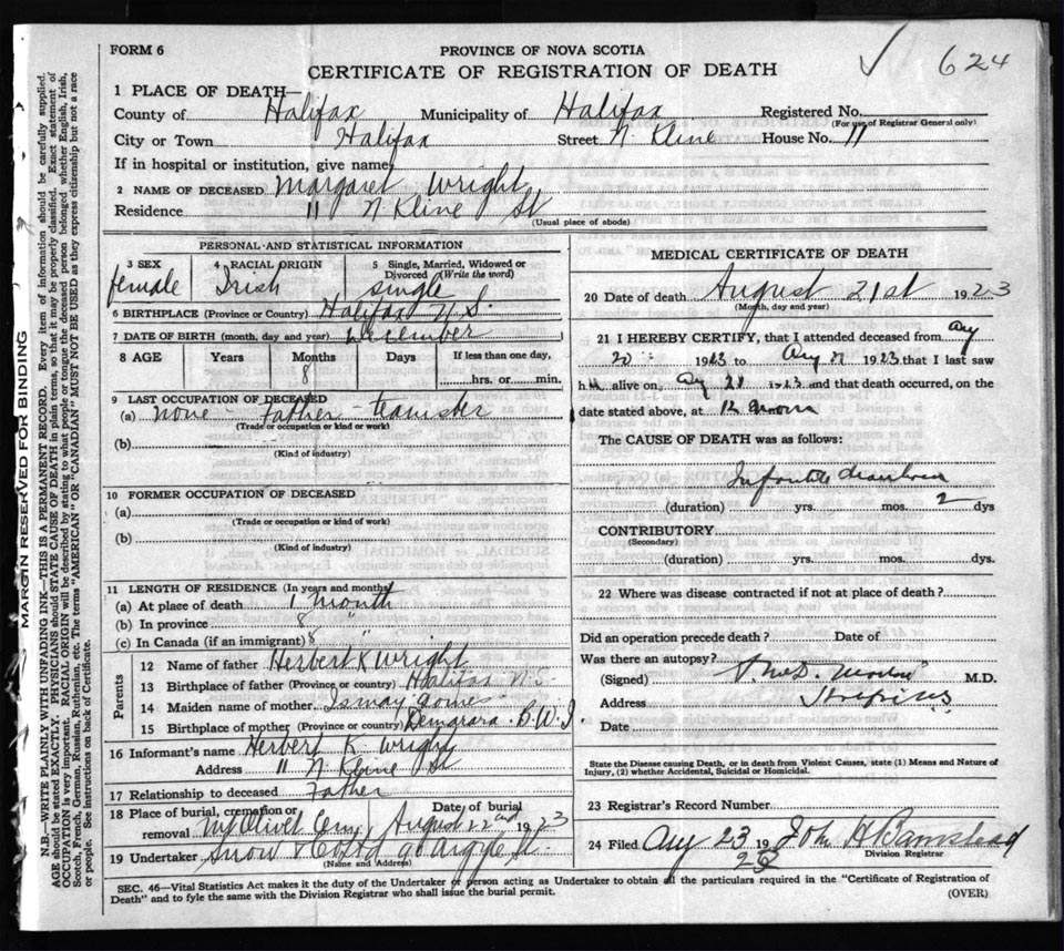 Death Registration: Year: 1923 file: 75 number: 624