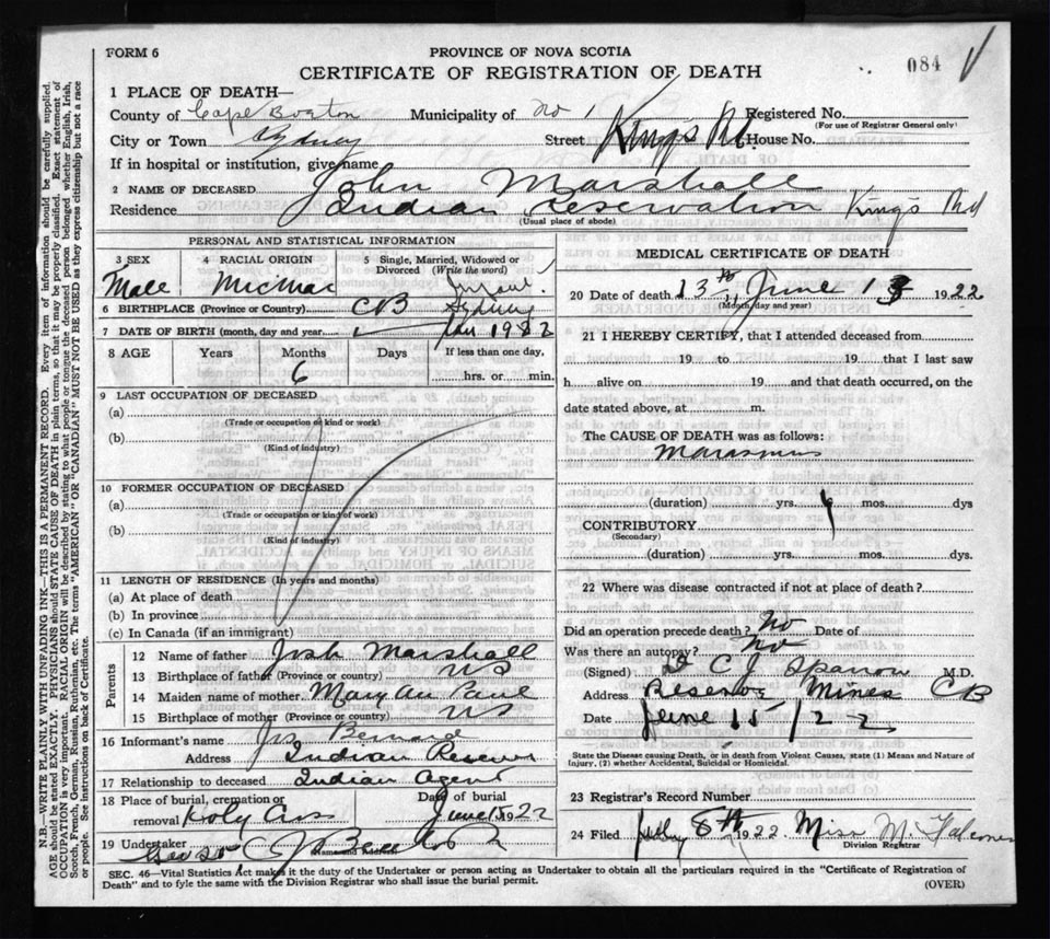 Death Registration: Year: 1922 file: 76 number: 84
