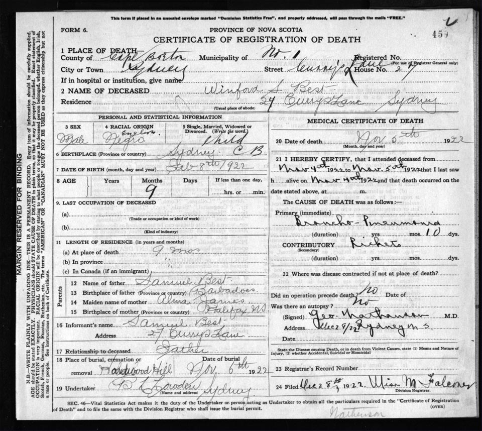 Death Registration: Year: 1922 file: 76 number: 459