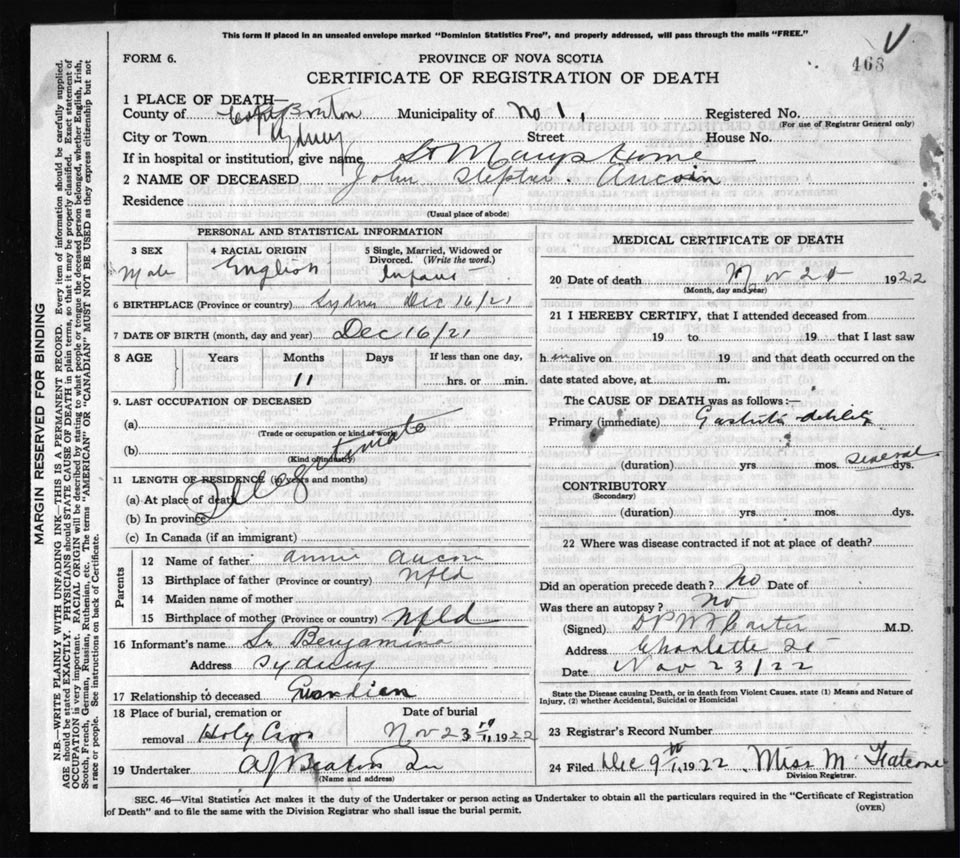 Death Registration: Year: 1922 file: 76 number: 468