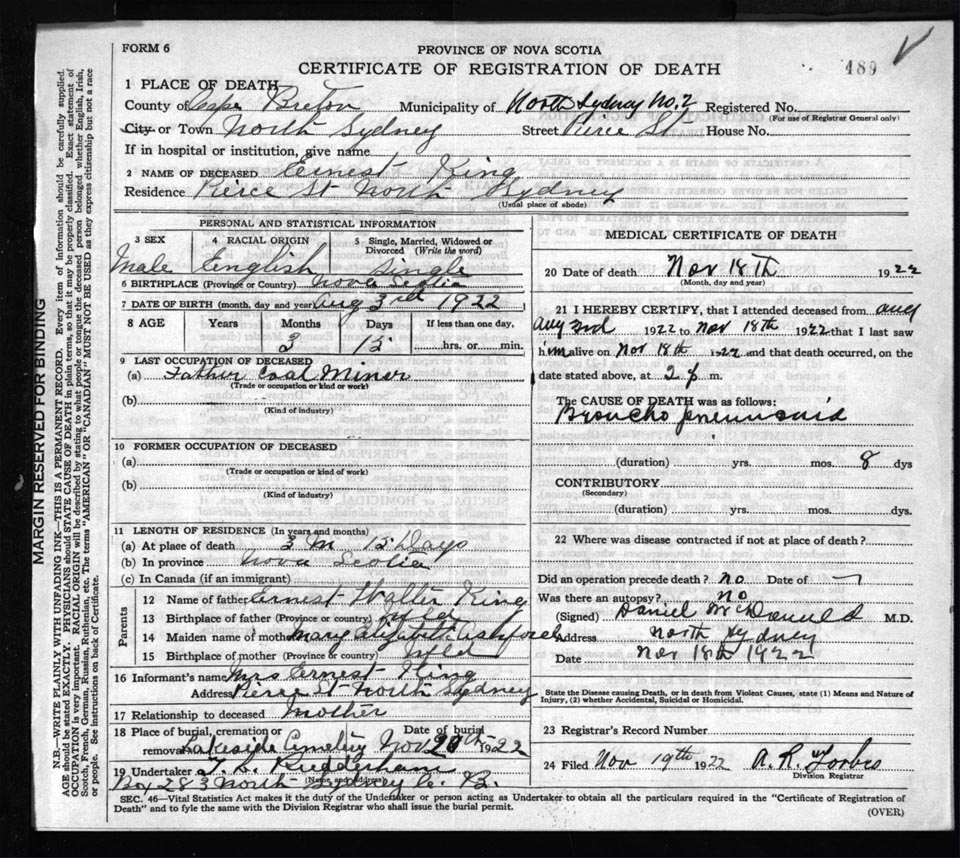 Death Registration: Year: 1922 file: 76 number: 489