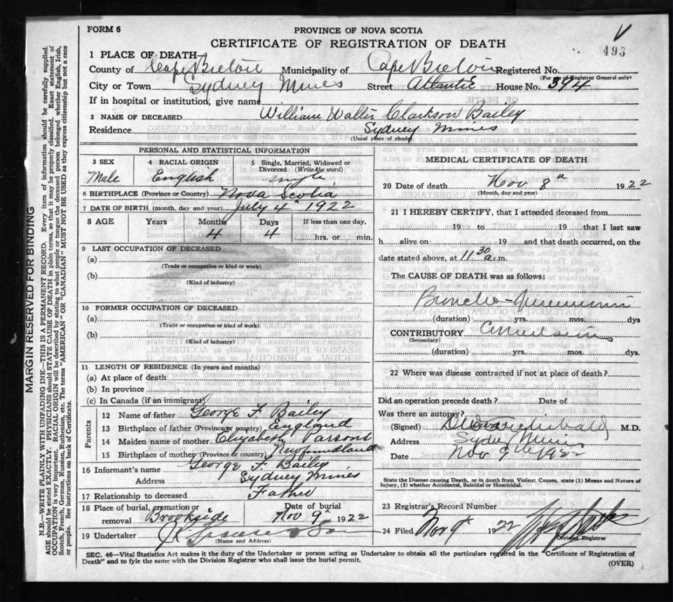 Death Registration: Year: 1922 file: 76 number: 493