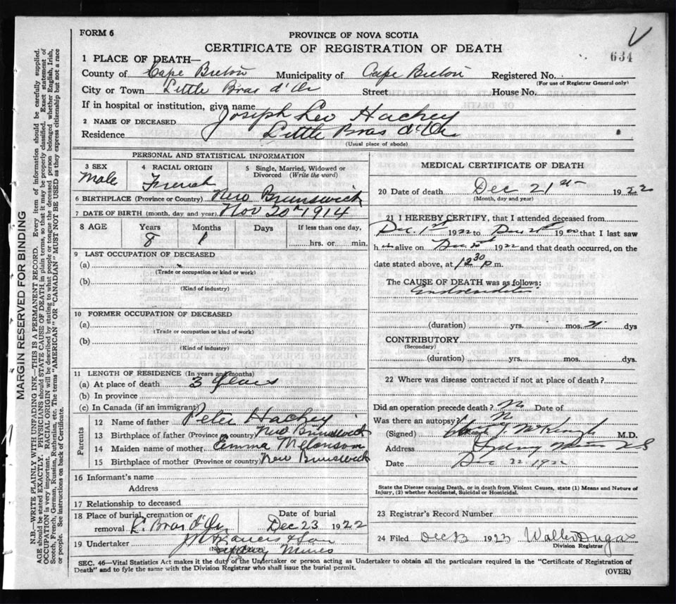 Death Registration: Year: 1922 file: 76 number: 634