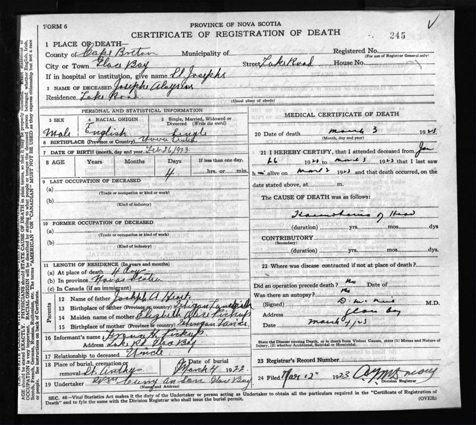 Death Registration: Year: 1923 file: 77 number: 245