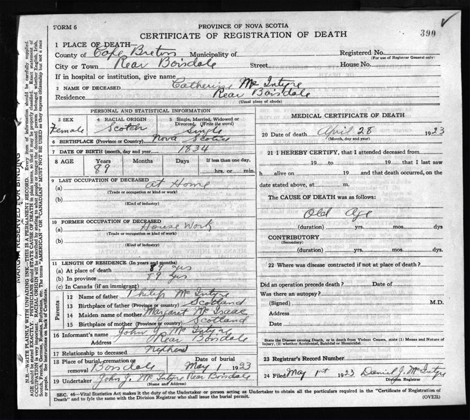 Death Registration: Year: 1923 file: 77 number: 390