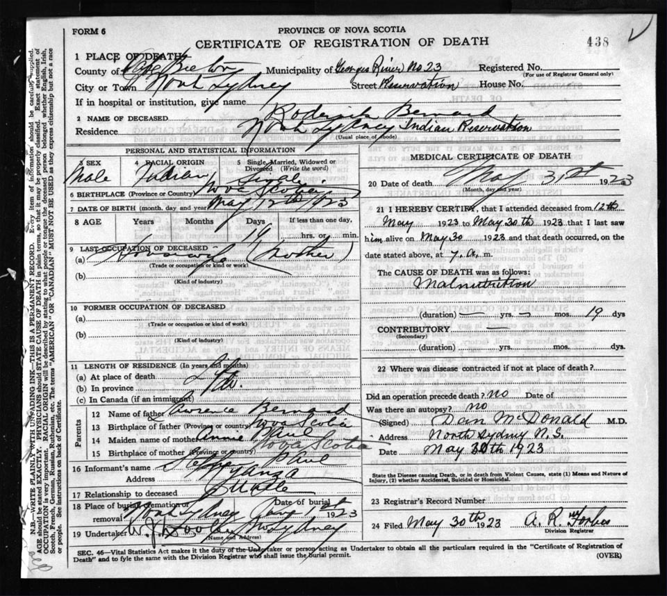 Death Registration: Year: 1923 file: 77 number: 438