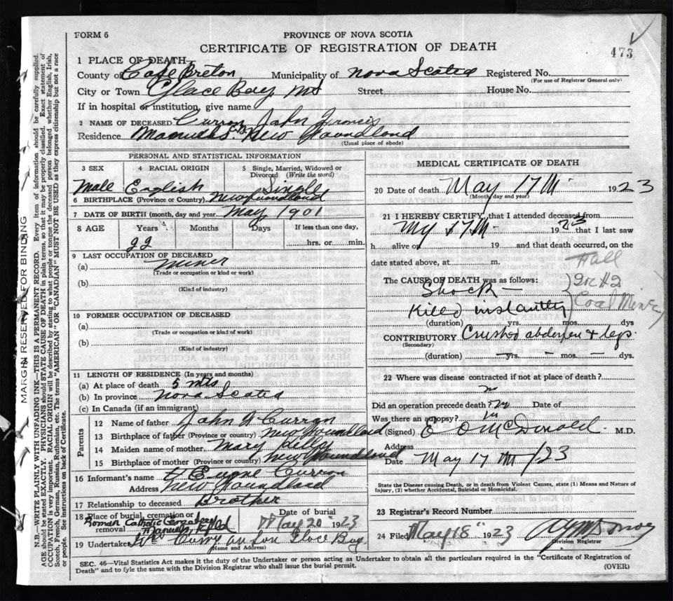 Death Registration: Year: 1923 file: 77 number: 473