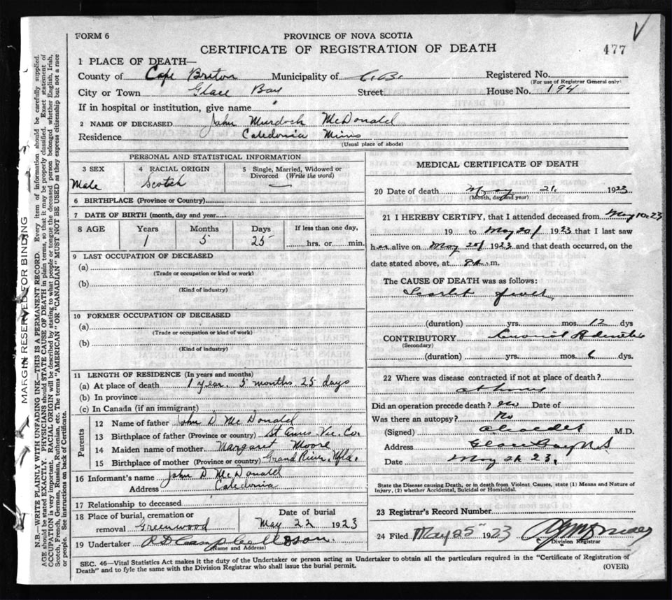 Death Registration: Year: 1923 file: 77 number: 477