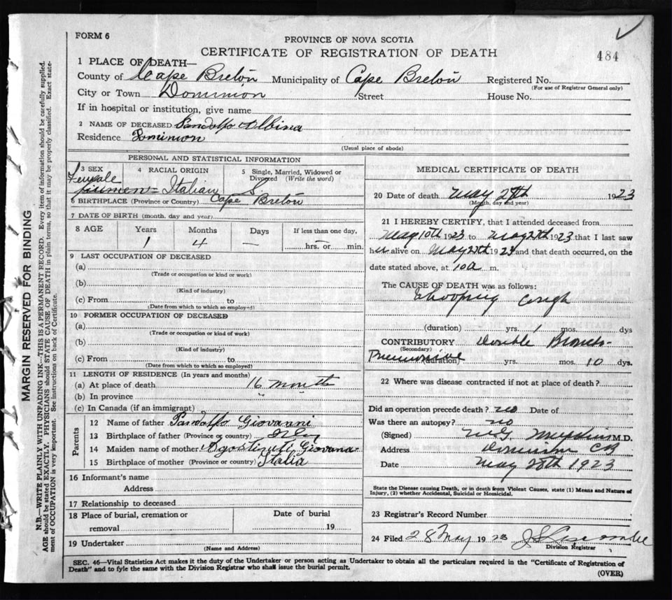 Death Registration: Year: 1923 file: 77 number: 484