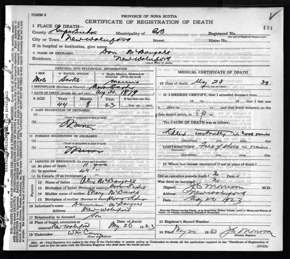 Death Registration: Year: 1923 file: 77 number: 494