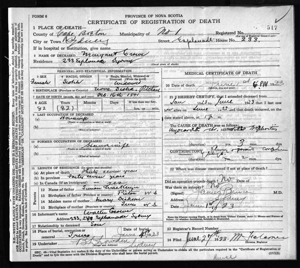 Death Registration: Year: 1923 file: 77 number: 517