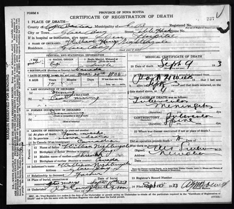Death Registration: Year: 1923 file: 78 number: 227