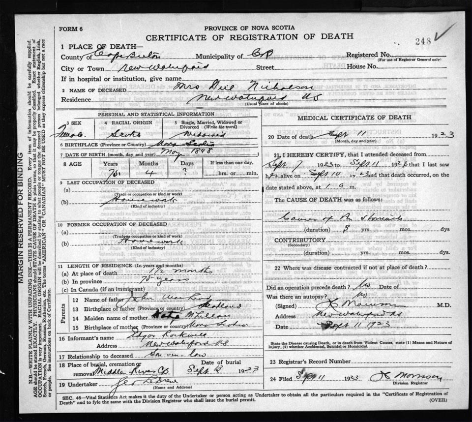 Nova Scotia Archives — https://archives.novascotia.ca/vital-statistics/death/?ID=177976