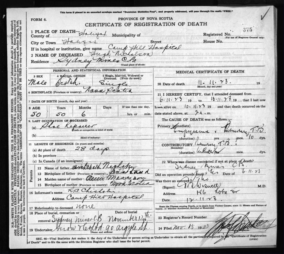 Death Registration: Year: 1923 file: 78 number: 375