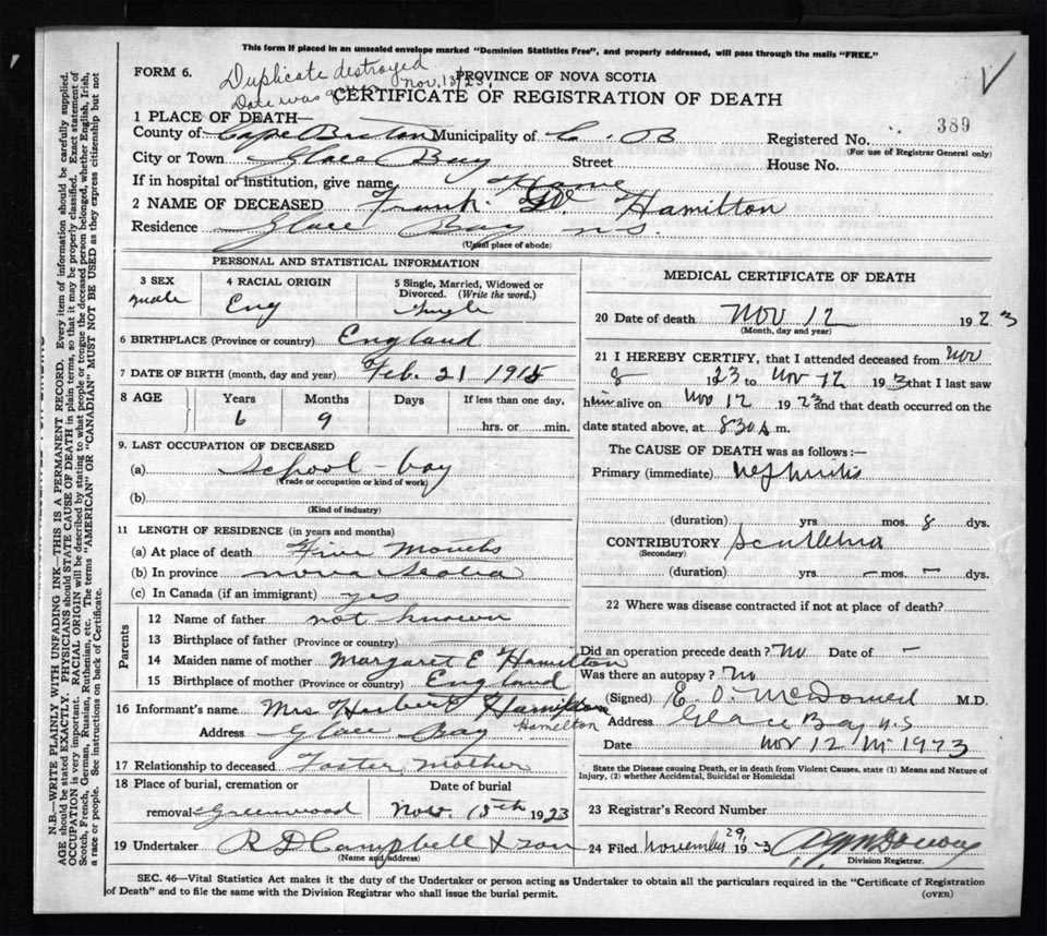 Death Registration: Year: 1923 file: 78 number: 389