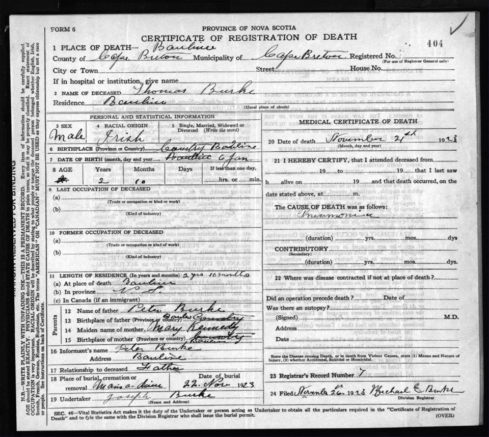 Death Registration: Year: 1923 file: 78 number: 404