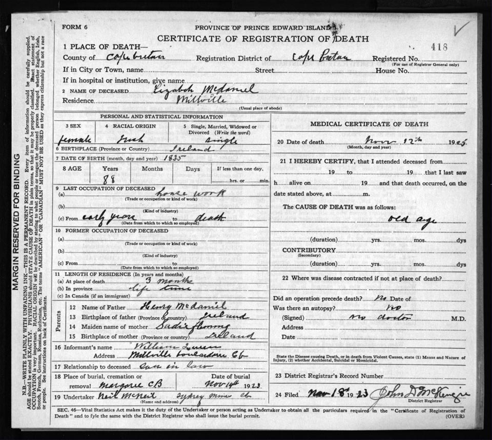 Death Registration: Year: 1923 file: 78 number: 418