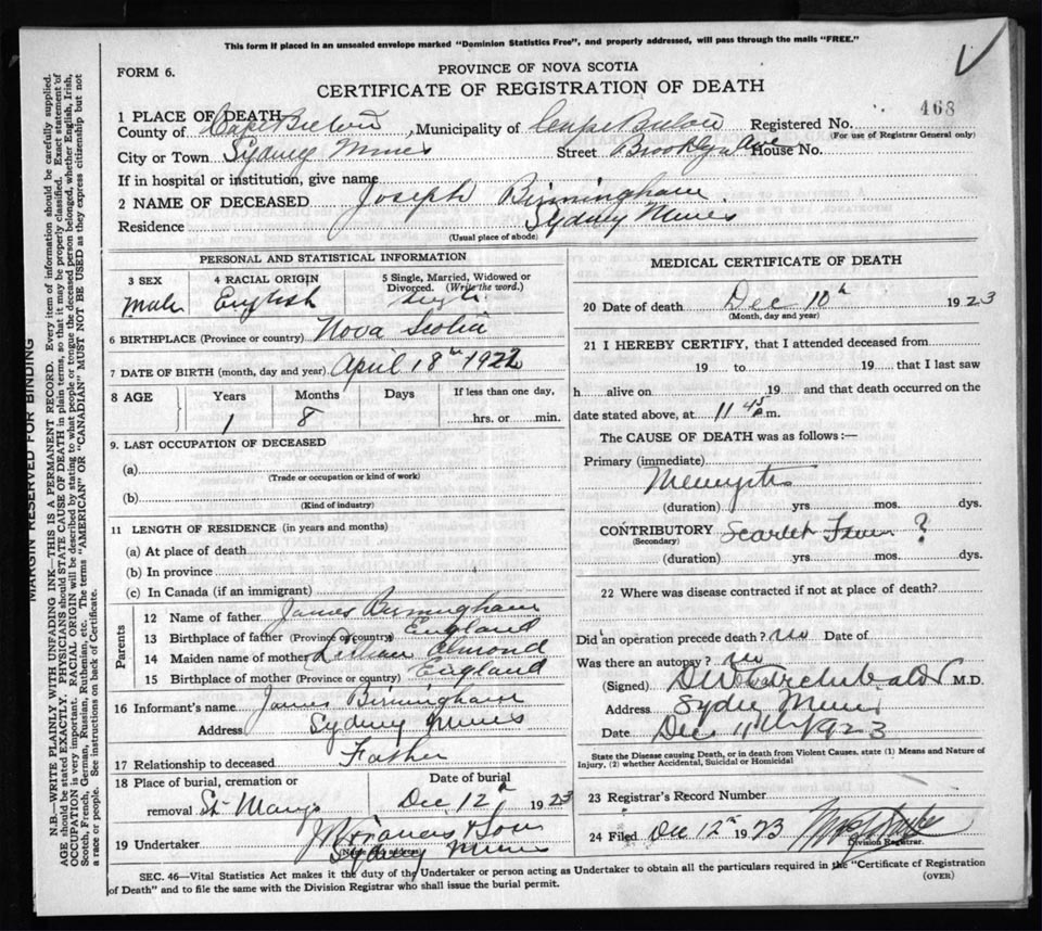 Death Registration: Year: 1923 file: 78 number: 468