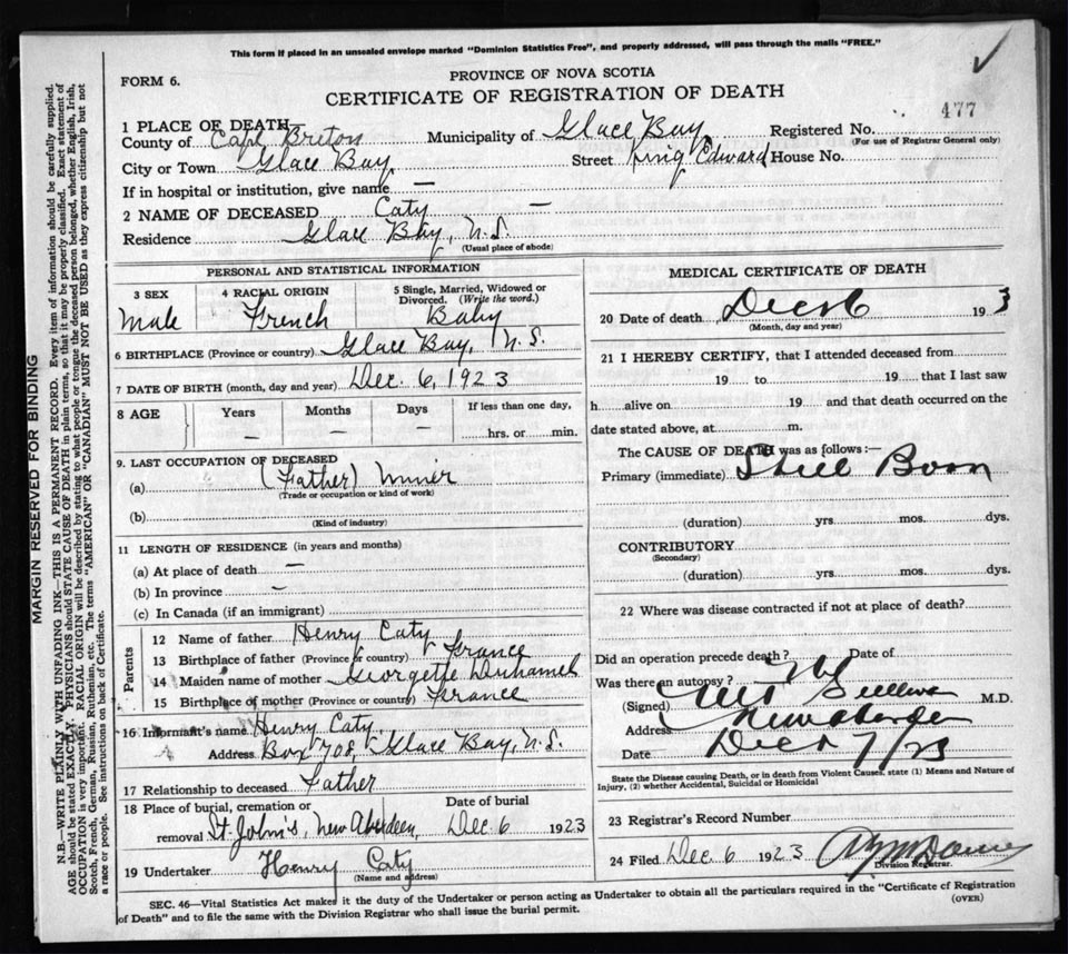 Death Registration: Year: 1923 file: 78 number: 477
