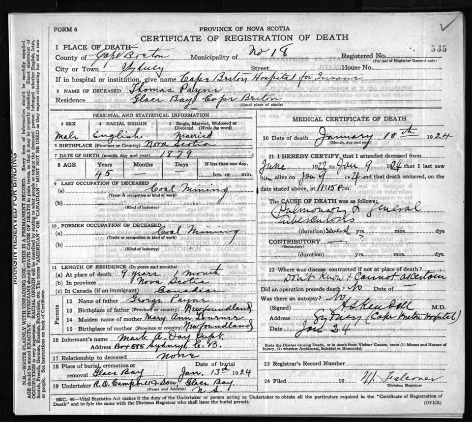Death Registration: Year: 1924 file: 78 number: 535