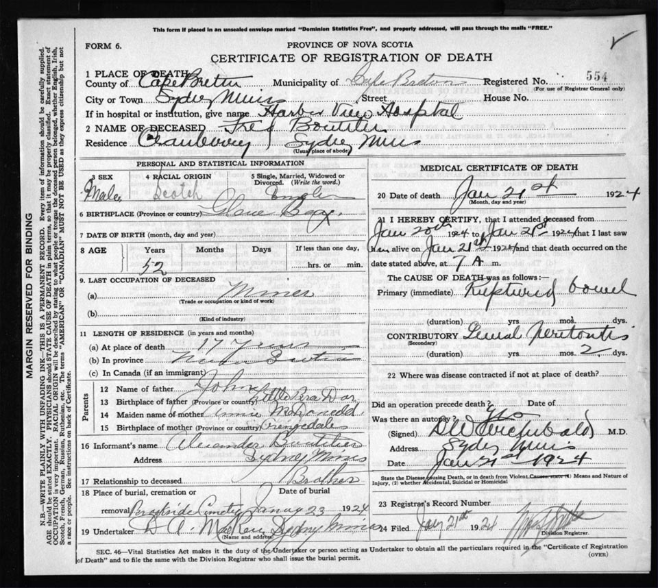 Death Registration: Year: 1924 file: 78 number: 554