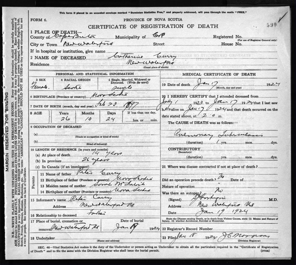 Death Registration: Year: 1924 file: 78 number: 590