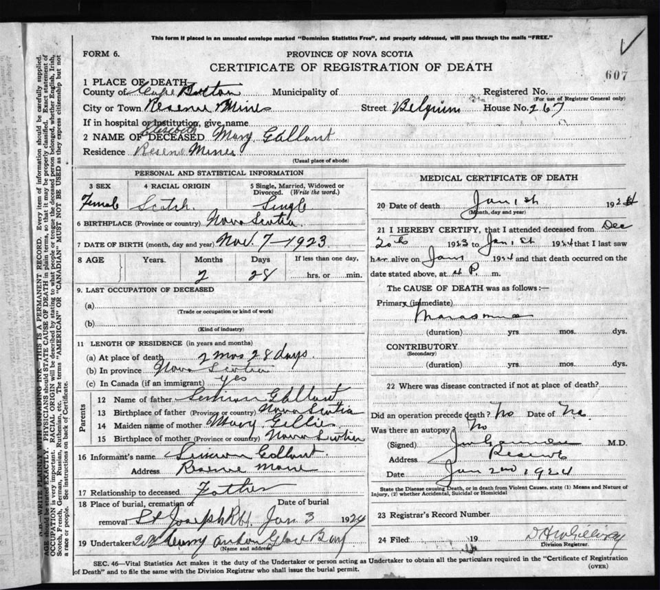 Death Registration: Year: 1924 file: 78 number: 607