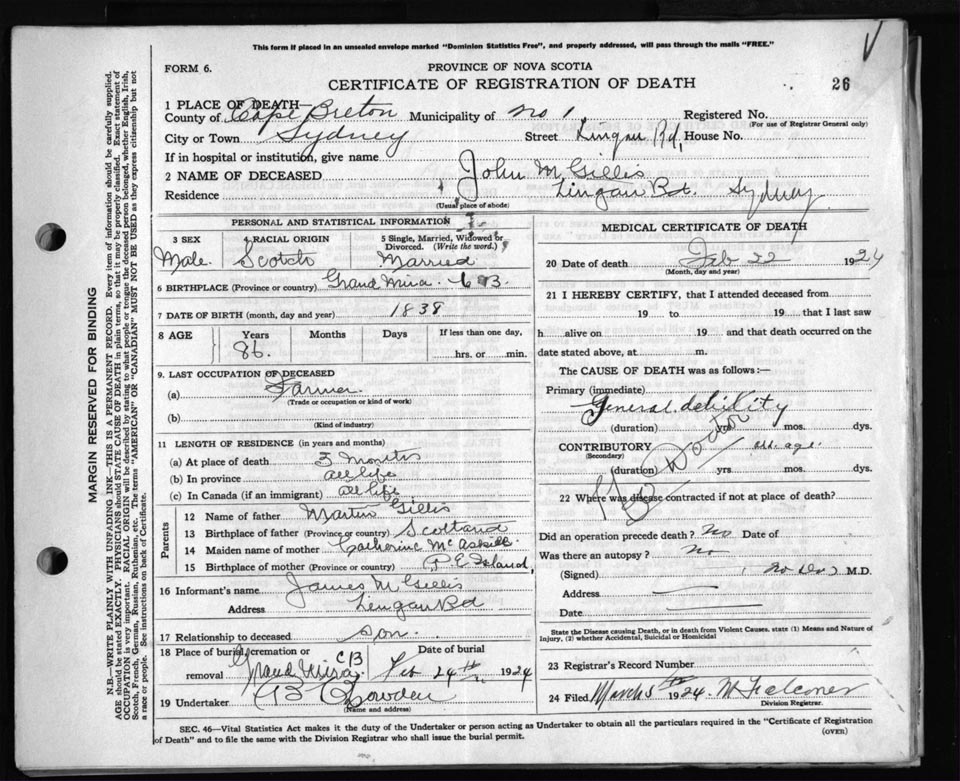 Death Registration: Year: 1924 file: 79 number: 26