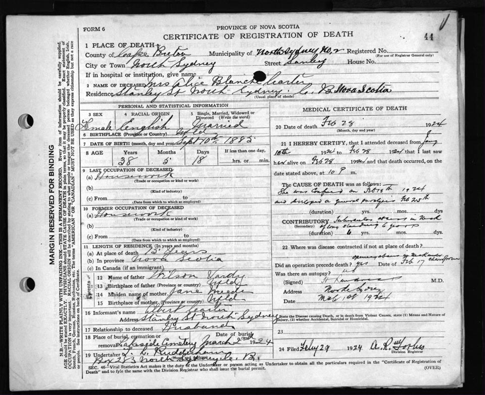 Death Registration: Year: 1924 file: 79 number: 44
